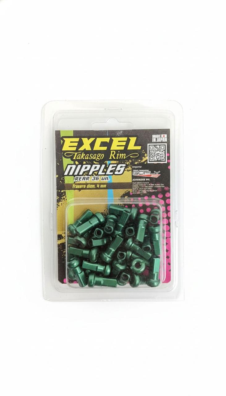 Set de 36 niples traseros verde marca Excel 4 mm
